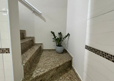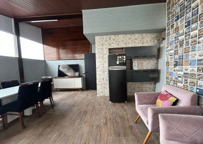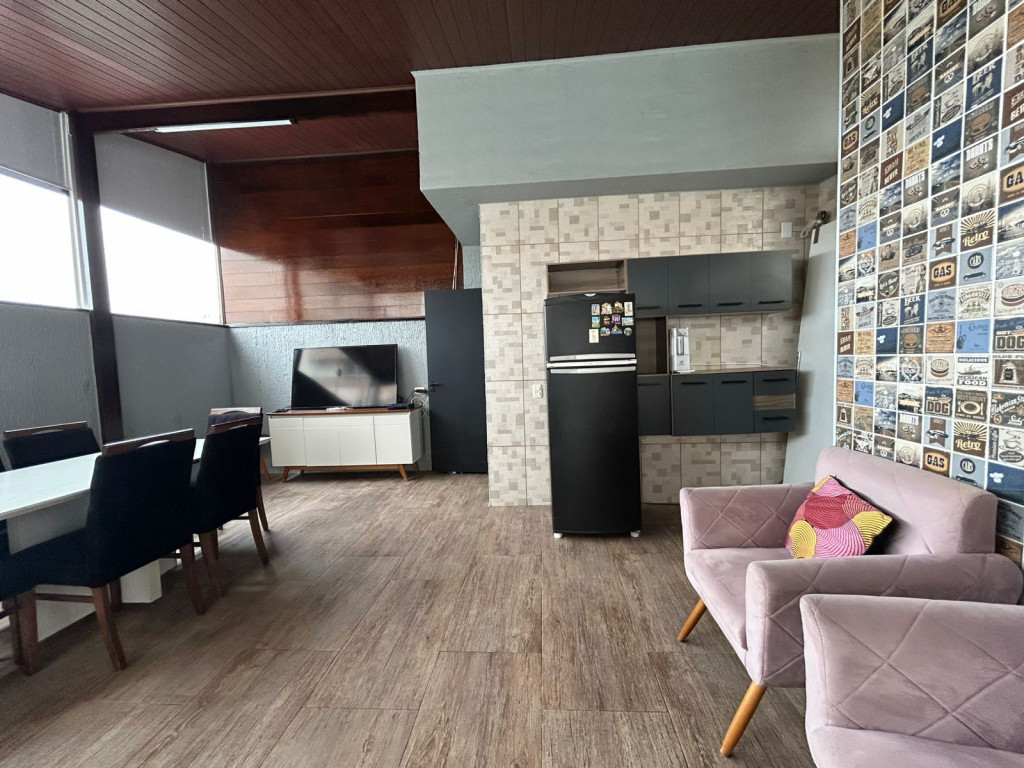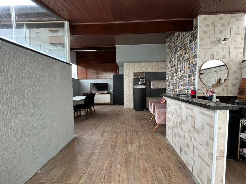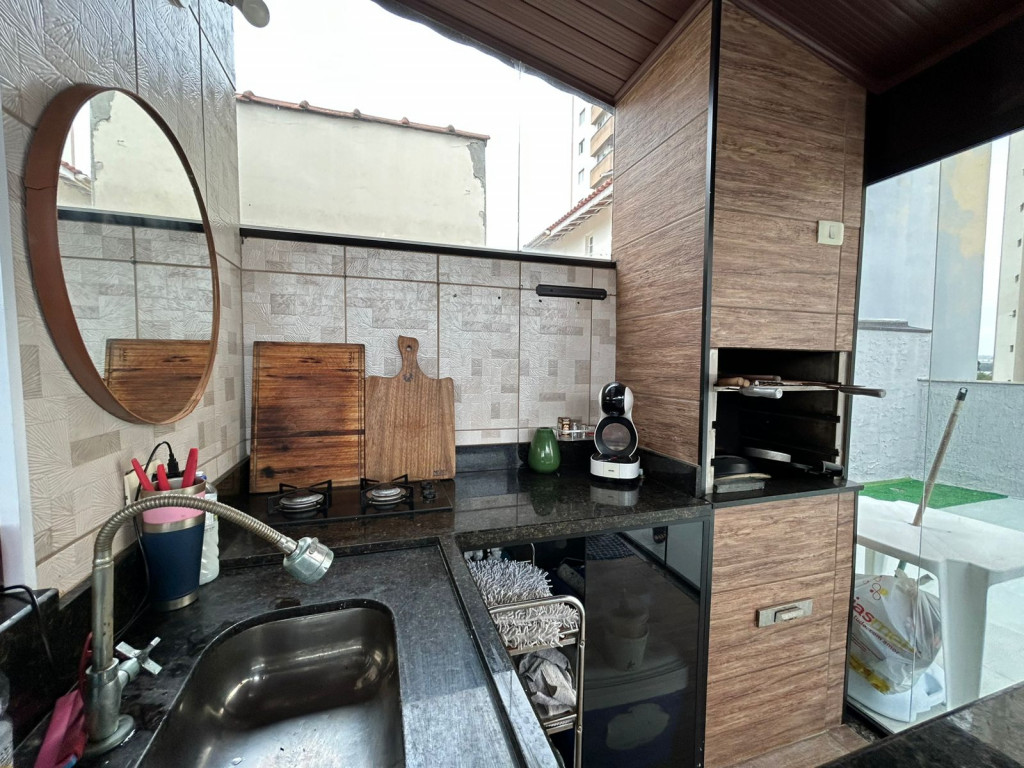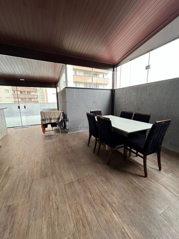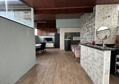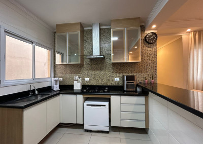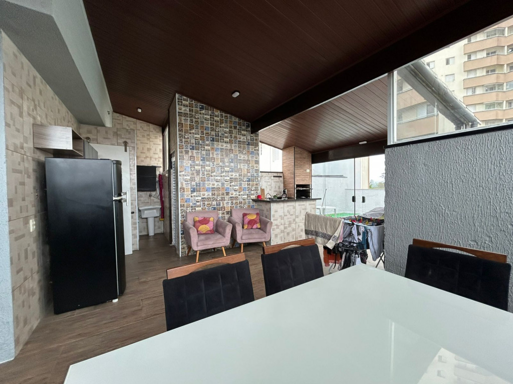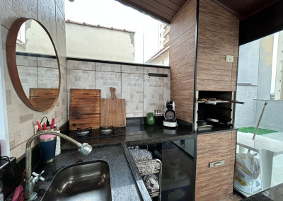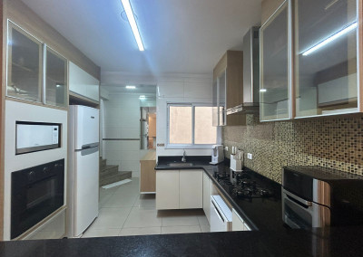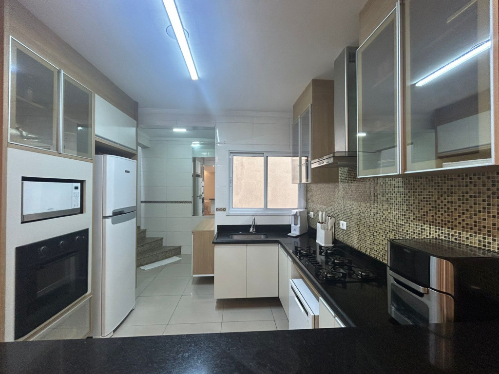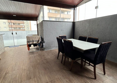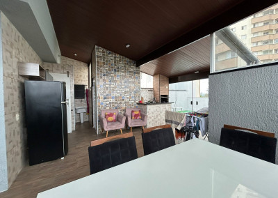 São 200m² distribuídos em sala ampla com espaço para sala de jantar, cozinha tipo americana com armários, 3 dormitórios sendo 1 suíte com varanda, terraço na cobertura coberto com lavanderia lavabo e área gourmet, área externa com ducha e grama sintética.